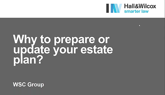 Join James Whiley of Hall & Wilcox as he discusses some of the most common issues to consider when preparing or reviewing your estate plan...